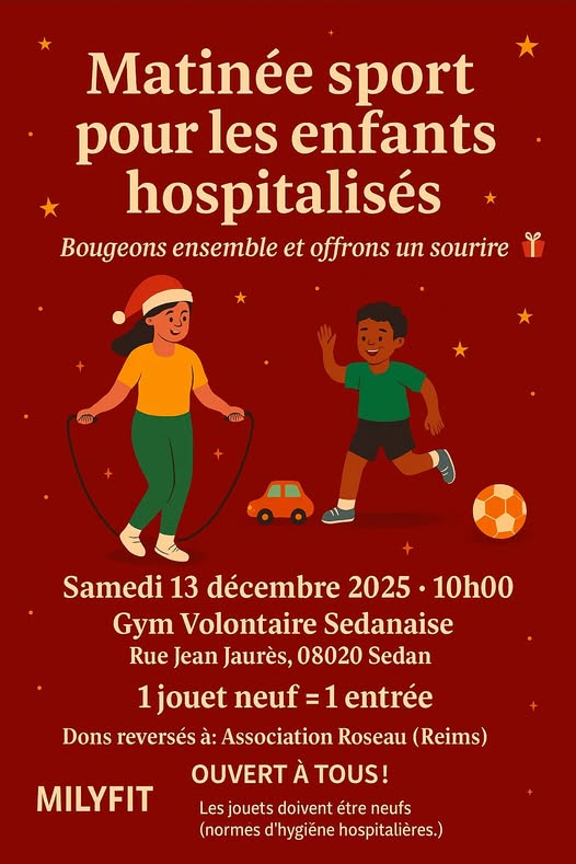 Le samedi 13 décembre 2025, retrouvons nous à la Gym Volontaire Sedanaise pour une matinée placée sous le signe du mouvement, du partage et de la générosité!